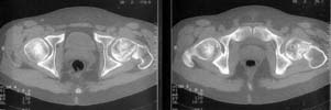 A miner 38 y.o. referred to us with 5 months old femoral neck lesion - after direct impact by a heavy construction he probably had non-displaced neck fracture. 3 months of spica cast, then non-weight-bearing. AP view and CT scan attached. Looks like AVN is present. ROM is painless and full, loading is also painless.
