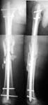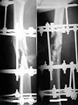 Pin sites and the femur in general show no signs of infection. L- 5,1x10^9/l, ESR - 27 mm/hr. But 2 weeks ago he reported episode of hyperthermia 39 degrees and pain in the femur. After 2-3 days all signs disappeared with 5 days of i/m cefalexin.