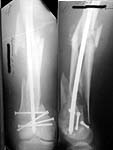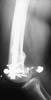 A male 31 y.o. addmitted to our unit today with the subject (see attachment). Injured in a car accident 1 month ago, since that he has been at bed traction. Other fractures are minor - undisplaced pubic rami and distal ulna.
