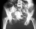 The patient sustained multiple injuries 11 months previously, including the pelvic ring disruption seen in the attached photos. The anterior injury was a fracture through the left pubis; the posterior lesion was a vertical fracture of the sacrum.