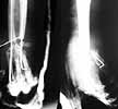 Shortened ulna and stabilised to hand using K wires. First metacarpal axially stabilised.