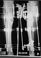 Attached are X-rays of my right leg three months after surgery with Ilizarov fixation.