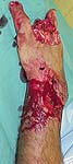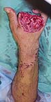 This patient is a 34 yo male raceboat driver who was ejected and had a propeller injury to his left non-dominant arm w/ amputation of digits 2-4 and dorsal wrist laceration and distal radius fracture w/ shaft extension.