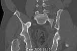 It appears from post-failure CT scan that the path of the more cephalad IS screw may be helpful to place a longer screw to engage opposite illiac wing as an option, or just anterior SI plates. not likely to do this tomorrow as he remains in a fragile clinical situation regarding his pulmonary status, and profound edema/induration around his pelvis/abdomen and thighs.