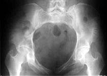 This 40 year old woman in Turkey is a week after a pelvic ring disruption. Her injuries include a fracture of the left ilium posteriorly with displacement, a pubic symphysis disruption with about 5 cm of displacement and right superior pubic ramus and ischial ramus fractures. The left ilium fracture extends from the pelvic brim to the iliac crest and appears to begin anteriorly near the sacro-iliac joint.