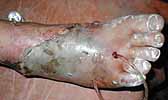 Male, 48 y.o. foot was crashed by 2 tons weight + alkali burn.