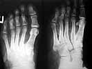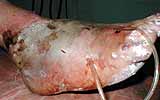 Diagnosis: a combined trauma of right autopodium (tarsus), extensive laceration and degloving, 2nd degree chemical burn up to 1 % of a body surface, closed fracture of navicular and clinoid (cuneiform?) bones.