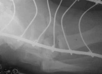 35-year-old male patient was injured falling from height. Among different injuries he acquired a complex foot trauma (fractures of metatarsus and tarsus bones, dislocations of Lisfranc and Chopart joints). Closed reposition and fixation with plaster were carried out.