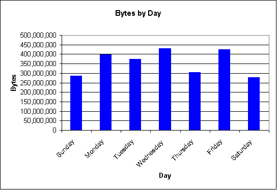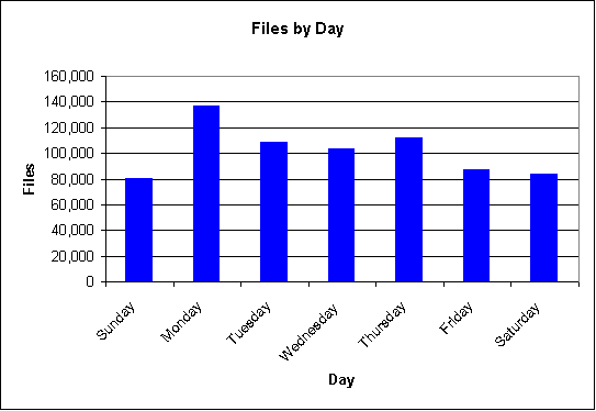 | Day | Num. Files | Prcnt. | Num. Bytes | Prcnt. | New Unique | ||||