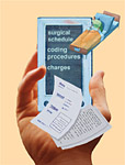 The latter benefit is worth exploring in more detail. Take for example surgical scheduling, often a labor intensive and time consuming secretarial process. Computer-assisted scheduling allows the scheduler to rapidly search for and identify appropriate time slots, automate the scheduling of frequent procedures using macros that include ICD-9 and CPT codes, and electronically transmit the information to the surgical facility. A 20 to 30 minute process can thus be reduced to 2 to 3 minutes. All this information is transferable to the physicians handheld device.