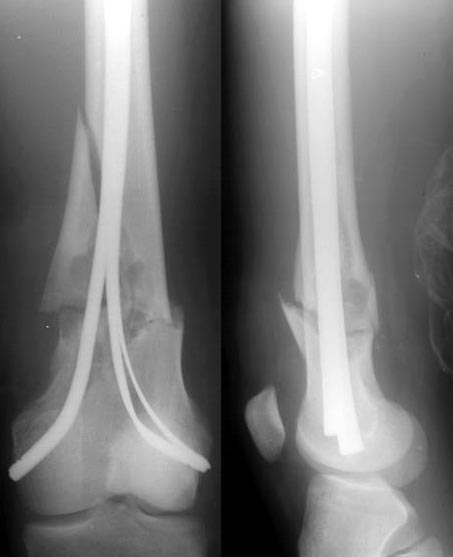 The patient is from another town so we don't want to tie him to the clinic using an ex-fix which requires qualified control for all the period of healing.