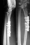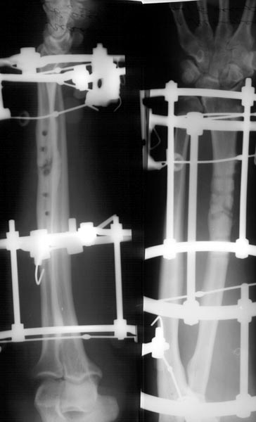 Instead of replating, an Ilizarov radio-ulnar ex-fix was selected.