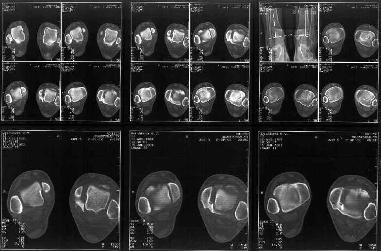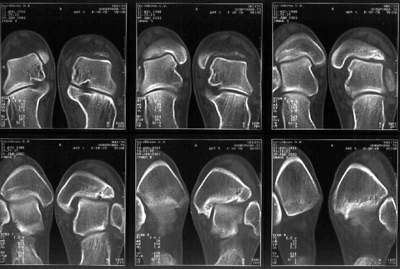 Now her complaints are pain and swelling around the ankle after loading and mediolateral instability because of deficiency of deltoid ligament and syndesmosis. No pain at rest. Ankle ROM is almost full.