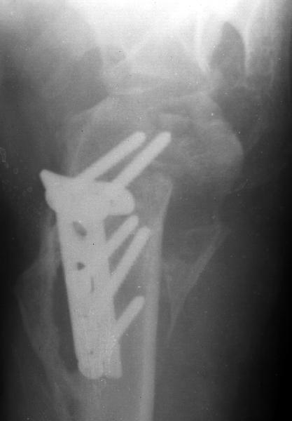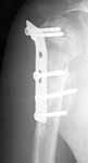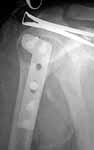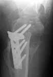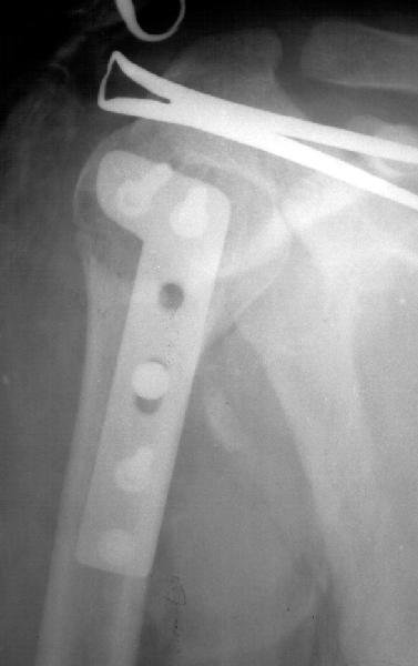 A male 25 y.o. after a car accident Aug 16, 2002 sustained a fracture of the proximal humerus (image 1), Sep 5 ORIF performed elsewhere.