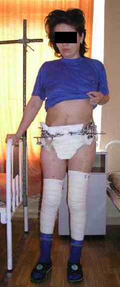To date wounds healed, the patient walks with crutches, no