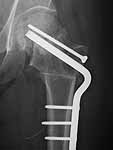 Looking at the x-rays and the time since the injury, what is the optimal treatment for now? We discussed 1)leave as is, 2)2 cancellows screws as is, 3)valgus osteotomy. Total hip replacement looks unnecessary yet.