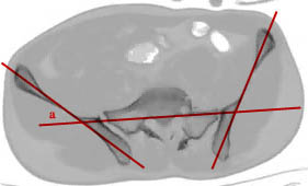 I can find no references about this quantitative method (iliosacral or quad_sacral lines or angles) of determining whether or not there is a transverse plane posterior deformity and how big it might be. How exactly are these lines drawn? Are there any normal values for the angles of their intersection?