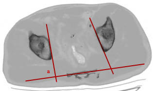 He then showed some representative CT scans with lines drawn on them similar to what is shown below.