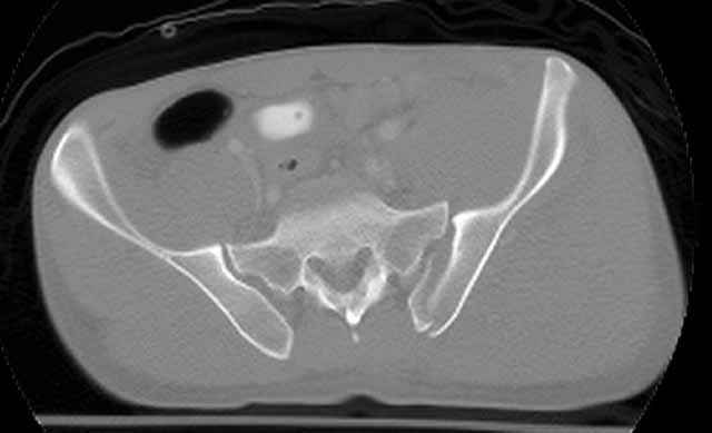 His pelvis examines stable to palpation but the SI joint-iliac fracture is displaced according to the images.