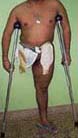 He was initially ambulated on a pair of crutches and later on a prosthesis specially made at Armed Force's Artificial Limb Centre, Pune. This prosthesis weighed 11.5Kg. Later when this developed problems another prosthesis weighing 9 Kg was made by a centre in Kerala (Lords). At present he has one prosthesis made by Endolite which weighs 4 Kg. However this is not quite satisfactory.