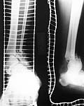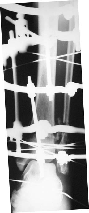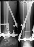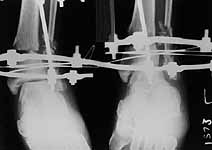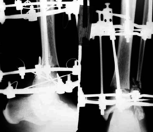 We noticed the valgus at the ankle and this was corrected at about three weeks from injury along with removal of calcaneal wires and skin grafting. I did not do a check-ray but used images in the II monitor. Subsequently we allowed partial weight bearing ambulation.