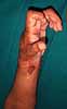 Warm ischaemia: Four hours at presentation. But had some capillary perfusion of hand through some collateral through the small skin bridge.
