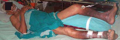 I have done closed reduction and Ilizarov ring fixator application in this case which I presented earlier. Patient is very comfortable. Skin has been opened only for K-wire / shanz screw introduction. Request your comments and opinions/criticisms.