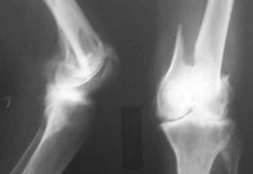 68 year old gentleman injured in a road traffic accident. Sustained closed fracture left supracondylar region with intercondylar extension. Found to have bilateral chronic lymphaedema of legs with eczema. History of recurrent frequent breakdown. Has been a chronic smoker though stopped for 2years (smoked for almost 55 years of his life). Distal pulses not felt due to thickened skin but detected on doppler probe.Both knees show marked osteoarthritic changes. Patient ambulant till injury. Clinical picture and X-rayattached.