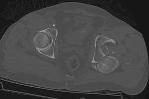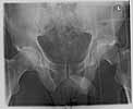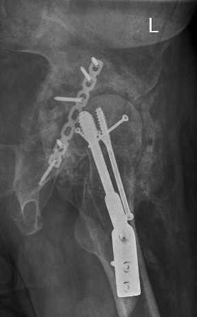 49 year old male, active speedskater, one year after MVC with multiple trauma and mild traumatic brain injury. Pipkin type IV fracture of the left hip. Same day ORIF through KL approach. No heterotopic ossification "prophylaxis". Day 7 wound revision for hematoma. Full weightbearing after 3 months. Full recovery except left hip function due to early severe HO. Function after one year: fixed ankylosis in 40 degrees flexion, 10 degrees exorotation. Patient frequently asks for attempt to improve hip function.