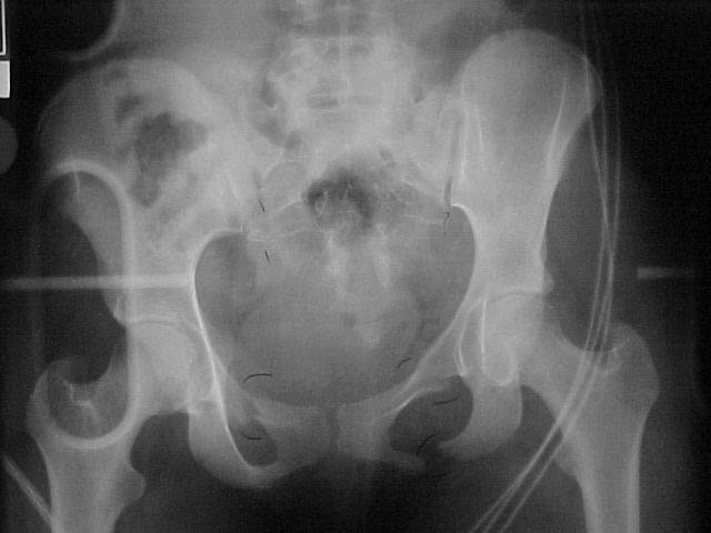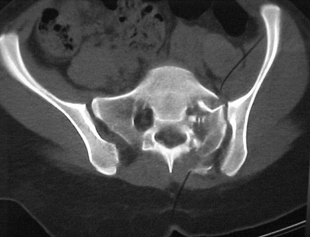 A 17 year old female involved in a car crash. Has a Type III lateral compression injury to her pelvic ring using the Young-Burgess classification. A windswept pelvis if you will. The images are included. There appears to be posterior displacement of the left hemipelvis as well.