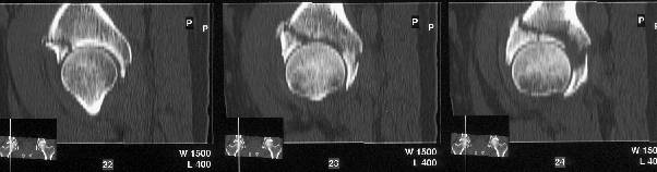 Yes it does. The CT scan reveals a fracture through the weight bearing dome.
