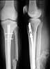 45 y/o male sustained in MVA 3 months ago. Had closed proximal third left tibial fracture. Initially treated in rural hospital where IM nailing was attempted but complicated with longitudinal tivial split down to tibial shaft to distal tibial metaphysis. Nailing was abandoned and cast was applied and patient was reffered to us.