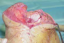 I opened his knee and removed the Hardware. The articular surface was smooth and healed. I felt that the entire Hoffa fragment must have settled w/ the distal femora articular surface and healed. A manipulation eliminated the flexion deformity, which I believe was due to posterior capsule contracture. I decided not to do a hemicondyle osteotomy and fixation. He is walking w/ a walker and going back to his tent tommorow. If his knee is a problem in several months, I will do an HTO. Doing a compensatory instead of a corrective osteotomy goes against my grain, but in this case I thought it was best. I do not know yet if I was Chicken or Wise.