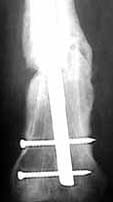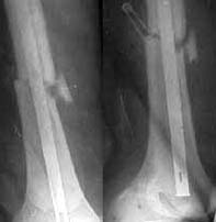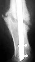 Seeking advice on further management of 26 years old male with femoral nonunion. He sustained femoral shaft fracture in a RTA 3 years ago and was treated with Open K nailing and Thomas Splint 3 years ago. See attached Xray. He was mobilised 3 months later. For about a year he was walking well then he developed pain in his knee. Xray attached show that the K nail had migrated into the Knee joint. K nail was exchanged with dynamic locking nail ( two distal screws - no proximal screw ) by closed technique - no bone grafting done. Patient was symptom free for about 18 months now has come with pain in the knee on weightbearing. Xrays attached show femoral nonunion with loosening of the distal screws (Area of lucency around the screws ). He is short fat male ( 5 feet 4 inches - 90 Kgs ), nonsmoker with no clinical or hematological signs of infection.