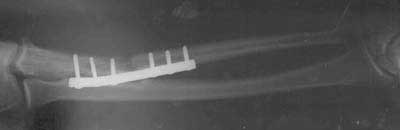 - 16 nonunions with gaps 1.2 - 2.5 cm rx'ed with corticocancellous interposed iliac graft with DCP plate.