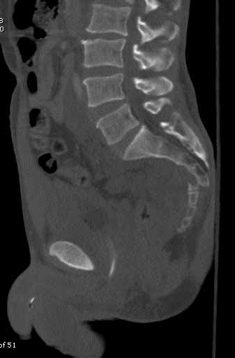 I have a patient who fell about 40 ft from a palm tree and survived. He sustained multiple orthopaedic injuries including comminuted subtroch., proximal humerus, and nondisplaced pelvic ring with zone 1 sacral fracture. The sacral fracture is well aligned but not impacted and will be stabilized with perc. Iliosacral screw. The anterior ring is nondisplaced. The patient also has this low transverse sacral fracture which is displaced. Would this low fracture benefit from ORIF or late excision if symptomatic? There is no discernable bowel or bladder neurologic injury.