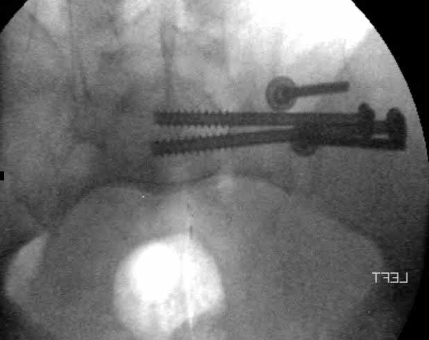 5. Your caudal iliosacral screw is/was in his spinal canal...it's low and posterior and the lateral fluoro image confirms this...a postop CT will show it (or it's trail at this point)...canal screws do not hold.