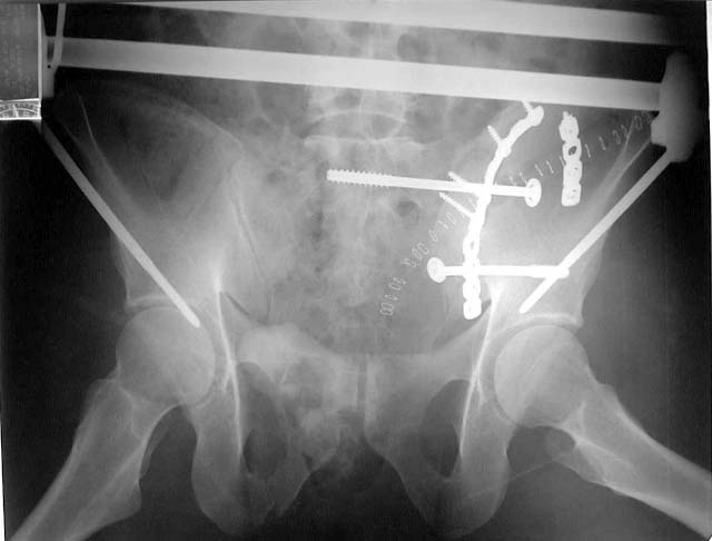 About the anterior fixation (referring to John Ruth comment): I think that a type C fracture like this might better be fixed on both sides. This two pins anterior frame is quit simple and not too risky. We know that SI screw can break and a non-union might happen, this also has been shown. The anterior frame is needed only for 4-6 weeks, then usually calus is apparent