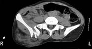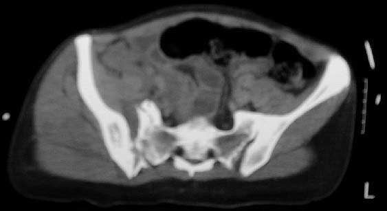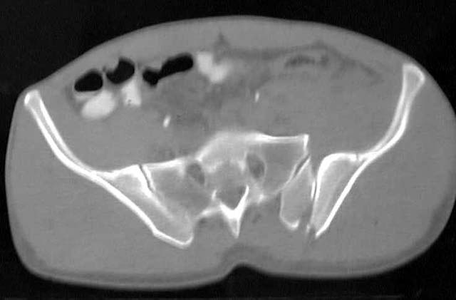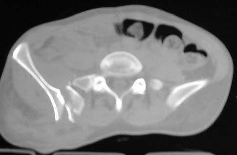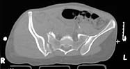 the ct image reveals no significant posterior pelvic degloving injury, for that single axial image.