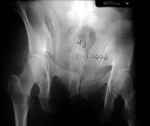 her plain pelvic radiographs indicate upper sacral dysmorphism, which has a significant impact on safe iliosacral screw insertion, regardless of imaging modality chosen to assist insertion.